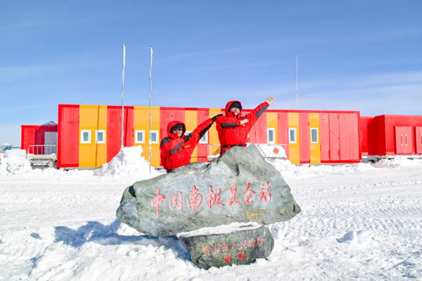 ①科考隊(duì)員在昆侖站合影②同濟(jì)大學(xué)顧元元與曹哲毅